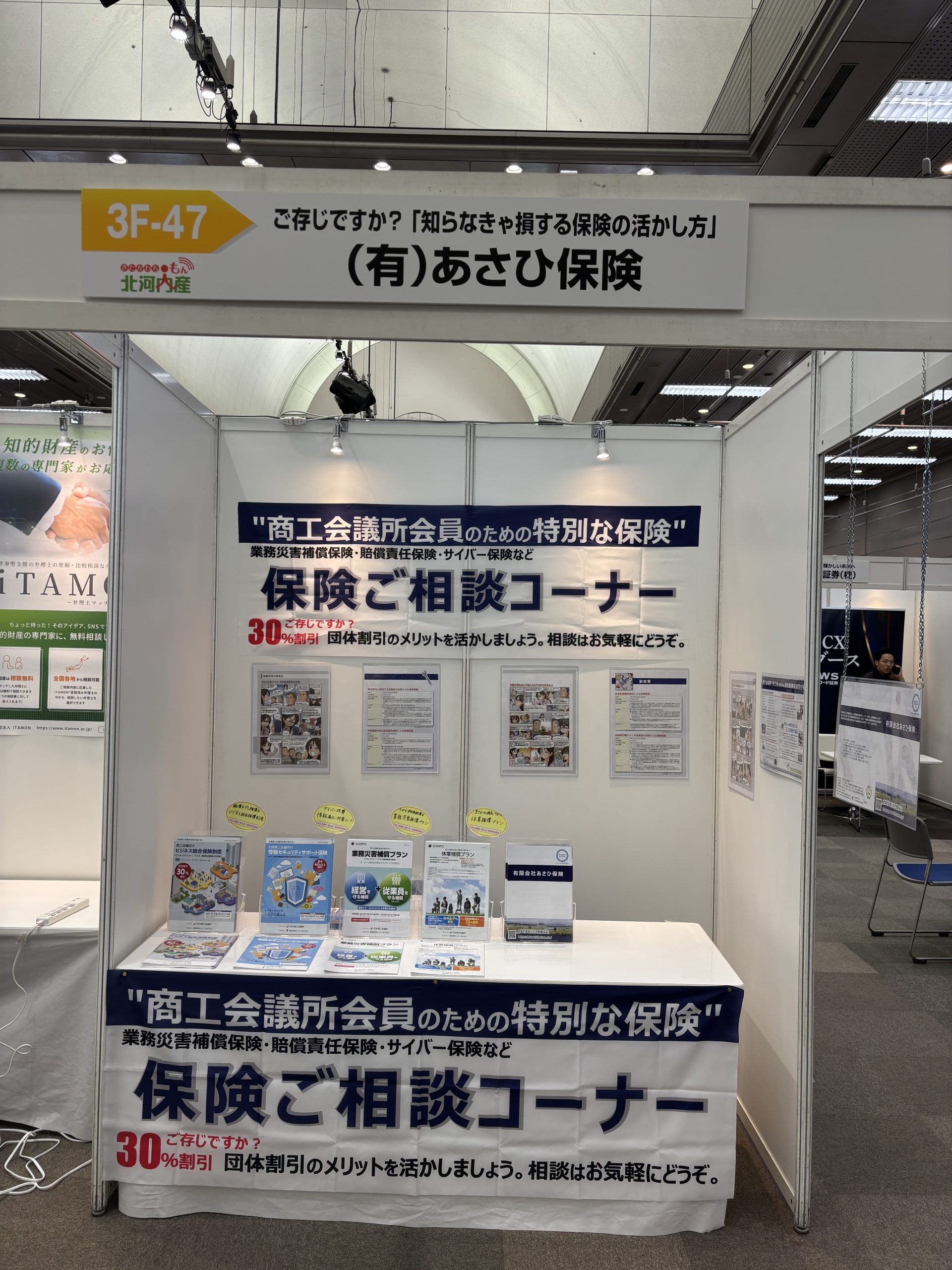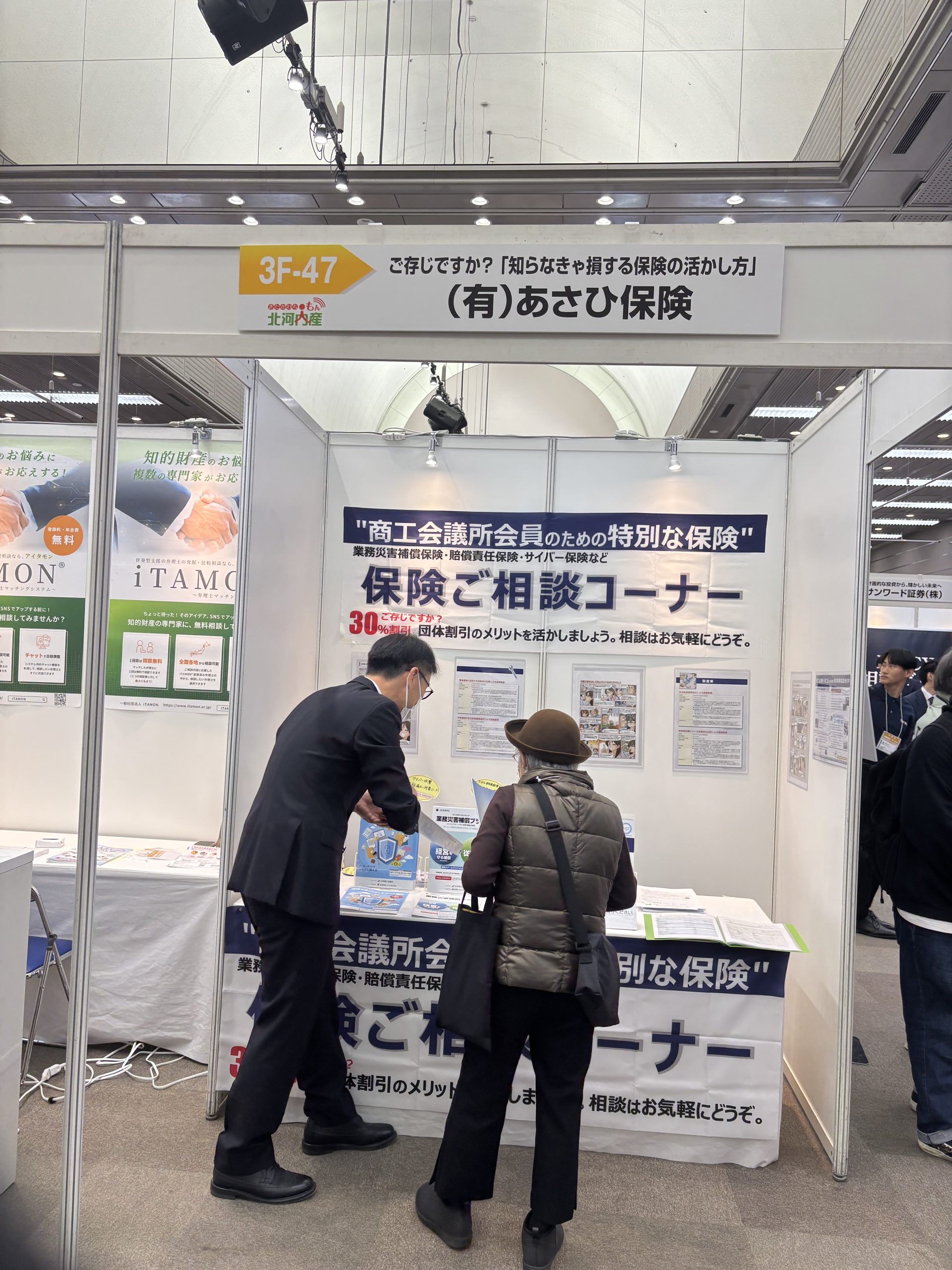 会場には製造業を中心とした多くの企業が出展する中、弊社は商工会議所会員のみが加入可能な『事業活動総合保険』および『情報セキュリティサポート保険』について、より多くの事業者の皆さまに知っていただきたいとの思いから、毎年継続して本フェアに出展しております。
